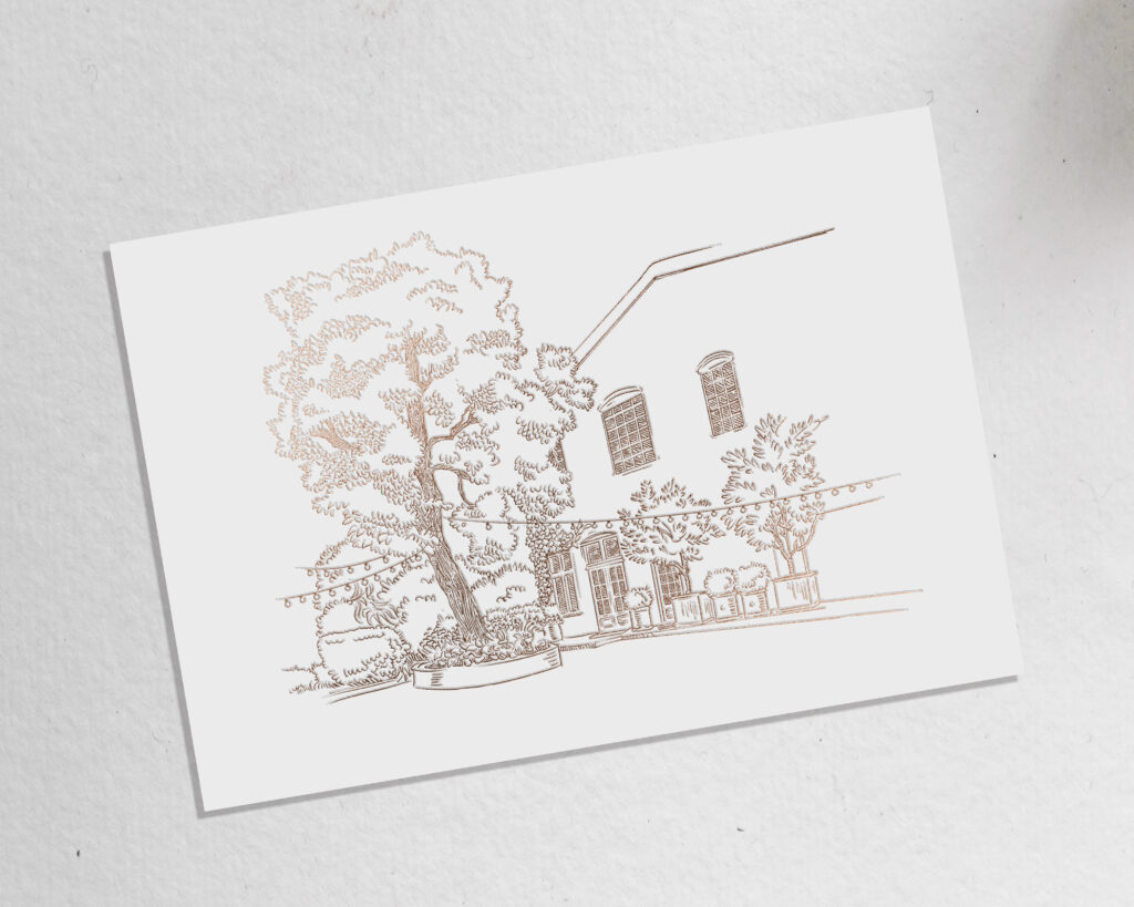 Celebrate your special place with a hand-drawn illustration of your wedding venue. Perfect for invitations, envelopes, or keepsakes, each piece captures the charm and character of where your love story unfolds